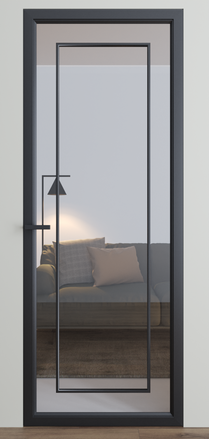 Hinged hidden doors of the Dooris factory are made of aluminum profile and glass.