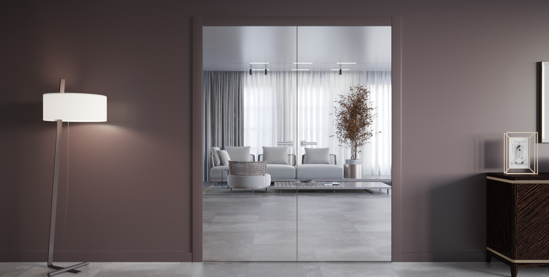 Diva Fluid boasts a minimalistic style with optimized sliding trolleys recessed into the door, while patented Fluid soft-closing dampers are discreetly concealed within the track, elevating the overall door design. Diva Fluid is suitable for walls finished with drywall, as long as the specific anchors for plasterboard are used and the installation is done accurately.