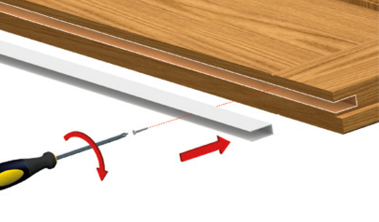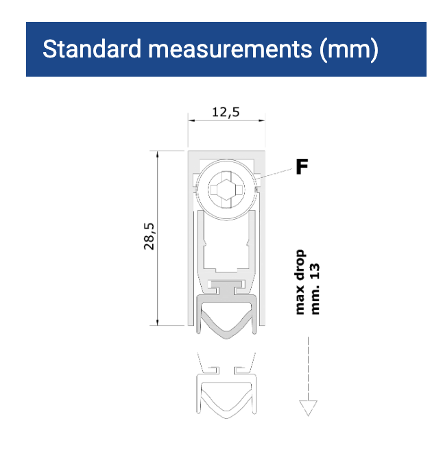 The door seal is installed in interior doors with a minimum thickness of 40 mm, into a pre-cut section at the bottom of the door. When the door is closed, the spring-loaded button is activated by pressure against the door frame, and the automatic seal drops down. When the door is opened, it raises automatically. Safe for use with any flooring.