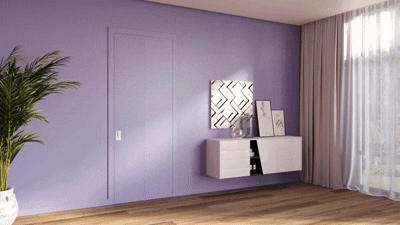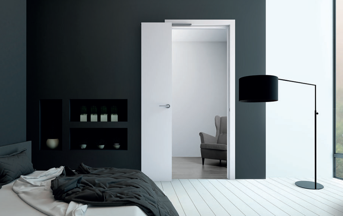 The COMPACK LIVING® 180° system opens up new design possibilities by freeing up space near the doorway, thanks to its minimal clearance requirements during both the opening phase and when the leaf is fully open against the wall.