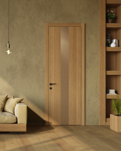 GLASS WOOD: a collection of doors with a natural veneer finish accentuated by the glass inserts.