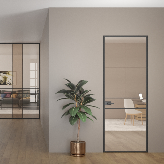PORTE collections are made of extruded aluminum and glass.