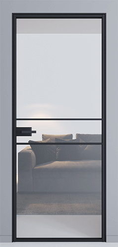 The standard colour of the profile and door jamb is anodized black.