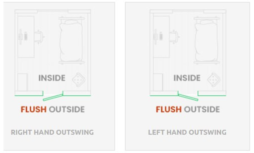 Outward-opening door with a thickness of 1.5''|40 mm.