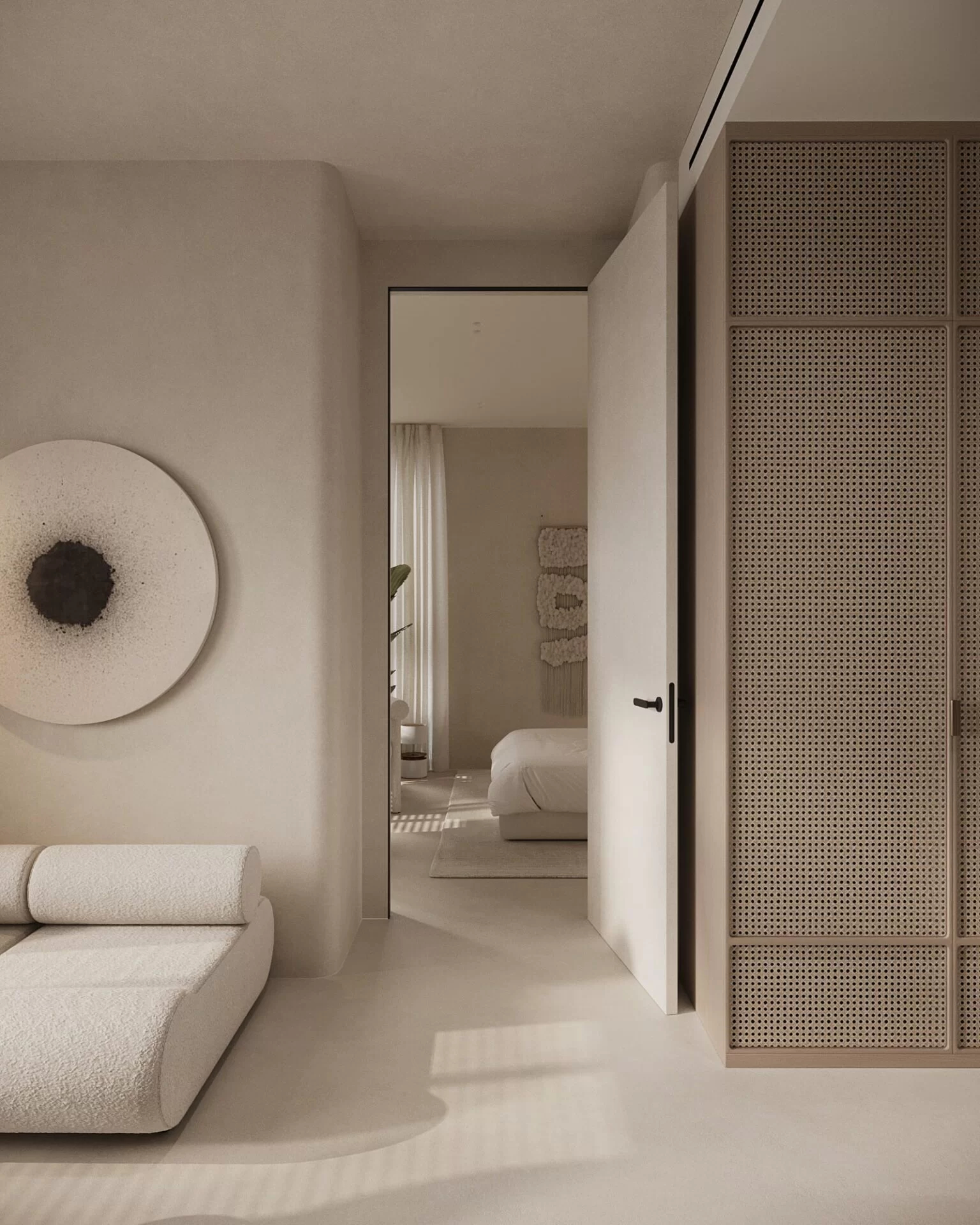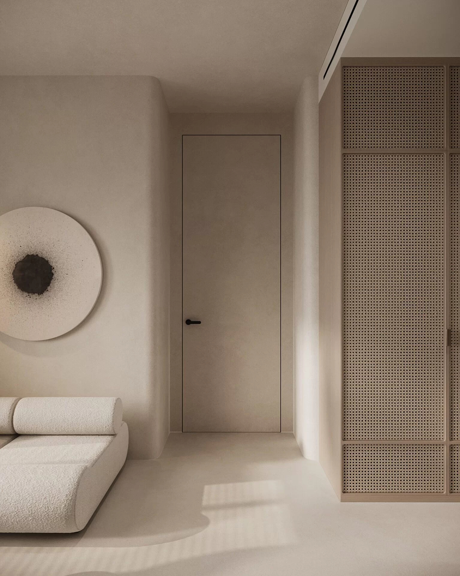 Diva Fluid boasts a minimalistic style with optimized sliding trolleys recessed into the door, while patented Fluid soft-closing dampers are discreetly concealed within the track, elevating the overall door design. Diva Fluid is suitable for walls finished with drywall, as long as the specific anchors for plasterboard are used and the installation is done accurately.