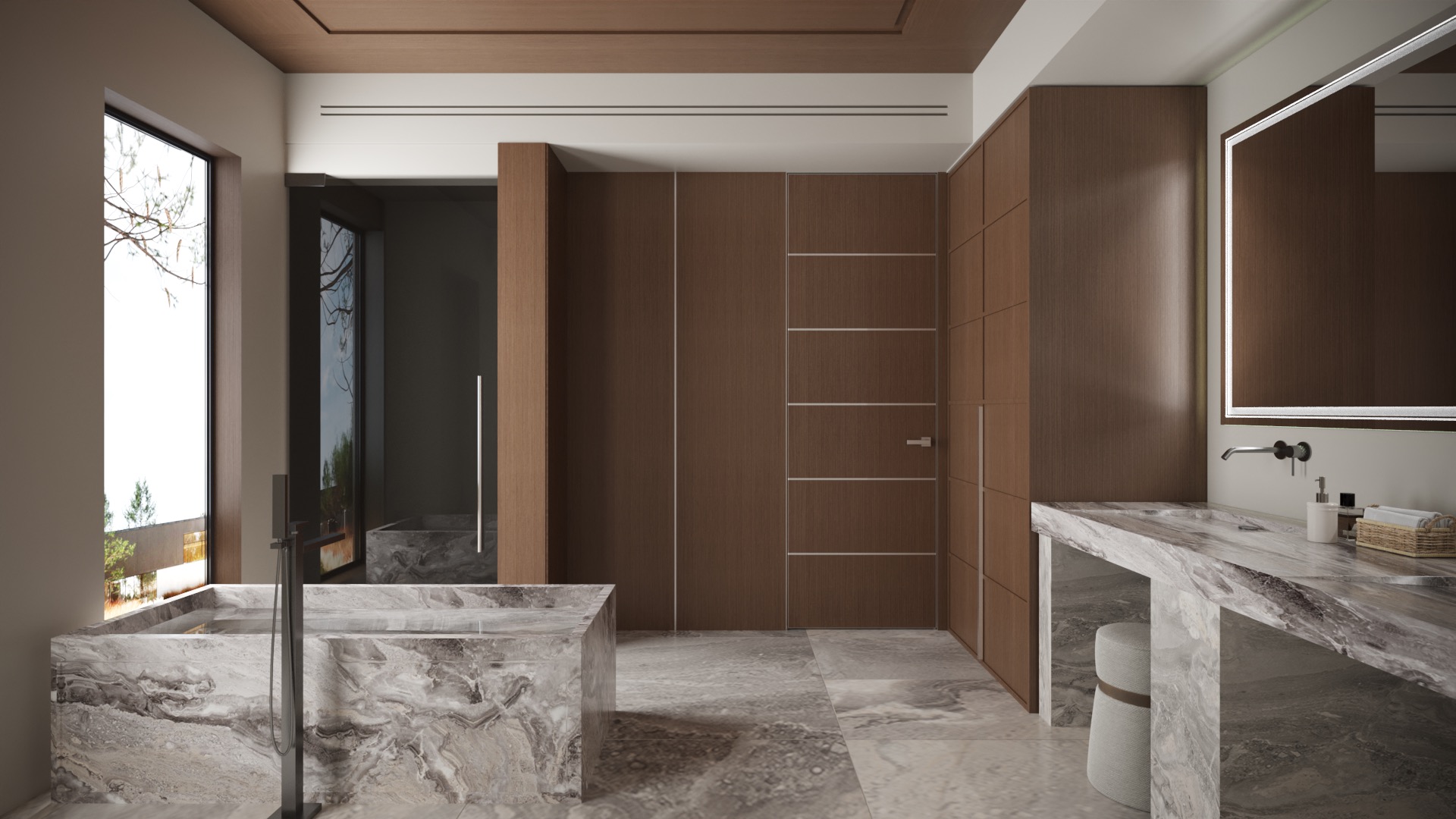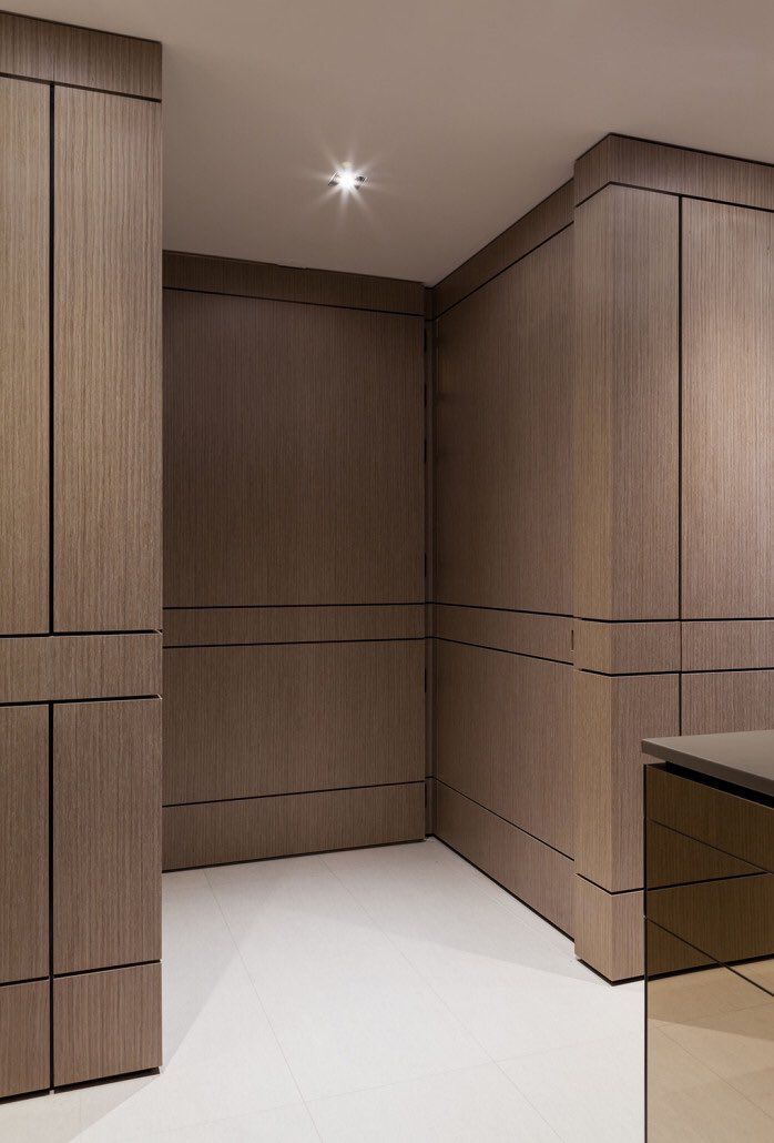 Additional options - custom selection of veneer pattern, aluminum profile inserts, backlighting, combined with panels of different finishes.